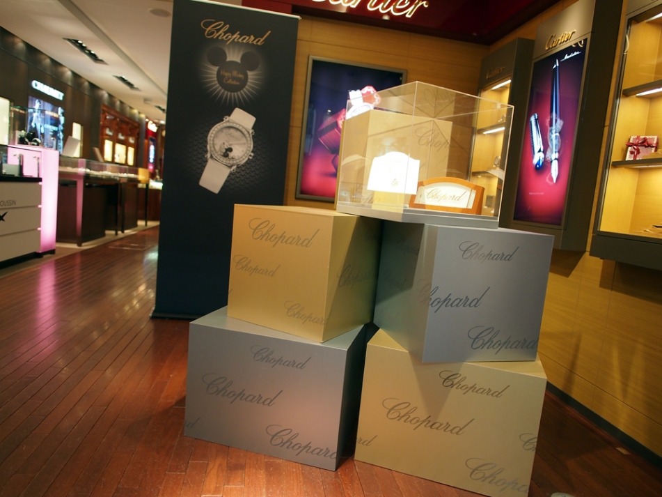 ミッキーミッキー! Leave a reply 先日ご紹介させていただいた ショパールの今年の新作、ハッピーミッキー!! 入り口からどどん!と。 期間限定で色々なミッキー商品を見ていただけますので 是非、ベルブランシュトミヤまで☆