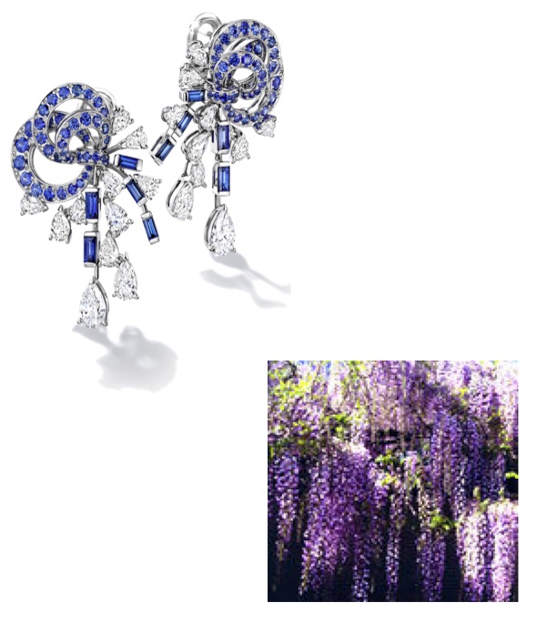 やさしい色合いのブルーとヴァイオレットの藤の花が、
