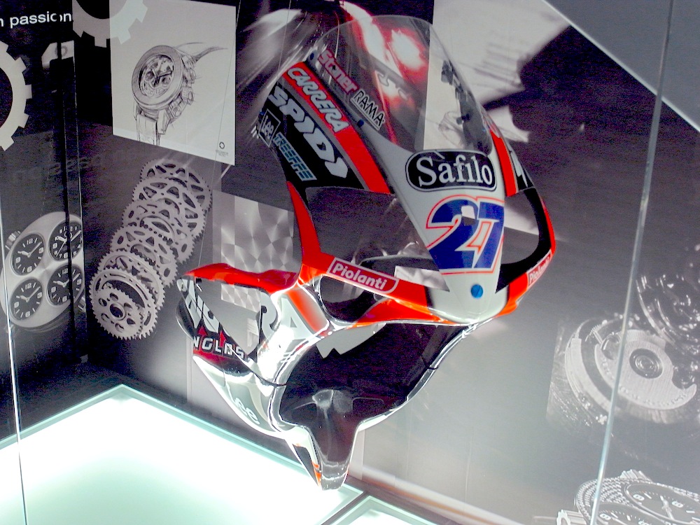スーパーバイクの車体を切り取って文字盤にしているというもの。