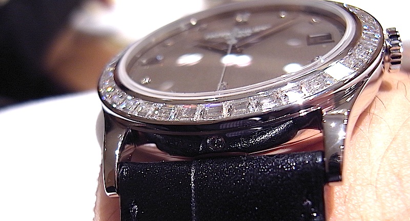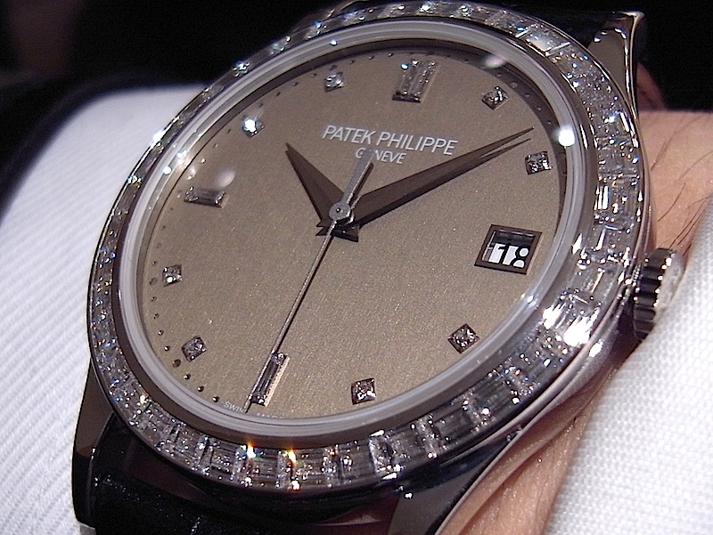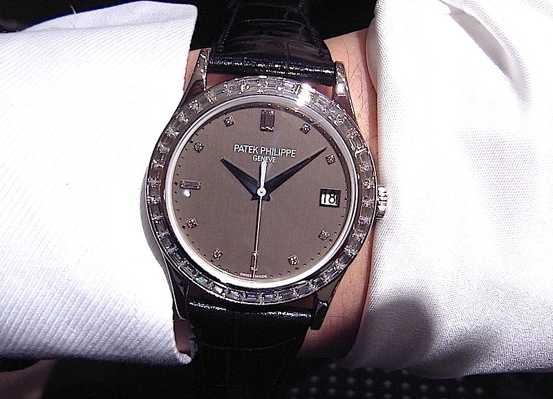 5298P バーゼル2011 パテック フィリップ新作08 Leave a reply 5298P-001 プラチナ製 30m防水 ケース径 38mm 税込予価 7,455,000円 ゴージャスなカラトラバのバケットダイヤ巻 こちらの前型にあたる5208は900万円近かったので かなりお買い得感を感じてしまいます(もちろん凄い値段ですけども)。 注目は、今までこの手の時計は黒ばかりで、たまに濃紺の ダイヤルというものがありますが ブラウンサテンのダイヤルは初めてではないでしょうか?