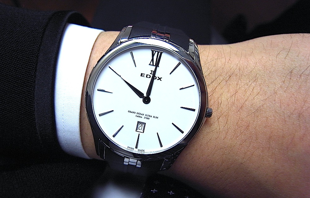 グランドオーシャン ウルトラスリム バーゼル2011 エドックス新作07 Leave a reply ある意味、一番インパクトがあったこちらのモデル。 グランドオーシャンウルトラスリム! 40ミリのケース径ですが 超薄型ウォッチとなっています! 1.4ミリという日付付きクォーツムーブメントでは世界で最も薄い ムーブメントを搭載しています。 SSモデルで 税込147,000円 SSブラックPVDモデルで 税込136,500円 こちらのモデルは既に入荷しております☆ 今までのエドックスファン以外からも 人気が出そうなこちらのモデル。 個人的にもイチ押しです