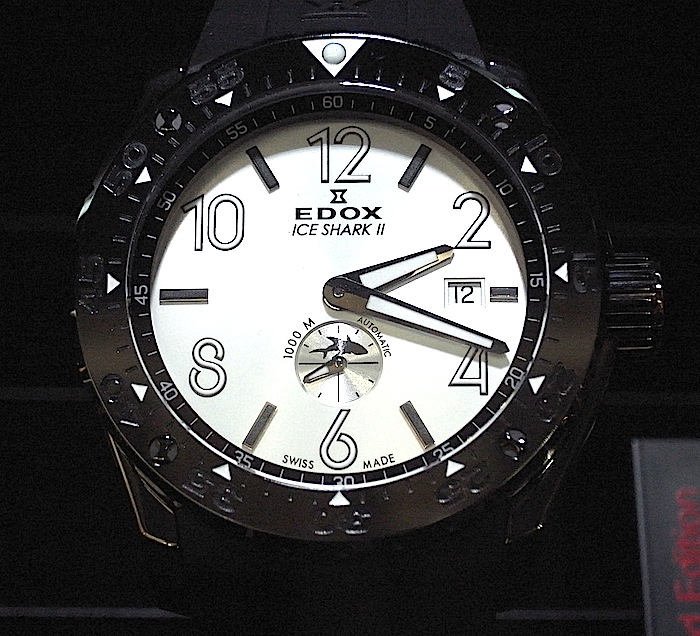 アイスシャーク2 バーゼル2011 エドックス新作03 Leave a reply おかげさまで大人気 のトミヤ限定アイスシャーク2ですが (まだ少し店頭に残っています!30本限定、税込21万円) その人気のアイスシャーク2から新しい文字盤が 発表されました。 こちらはショーケース越しにしか 撮影が出来なかったので 写真がよくないですが、、すみません。 こちらはなんとシルバーフェイスのアイスシャーク2。 世界200本限定という希少品です。 お値段変わらず税込21万円。 写真が悪くてすみません、、こちらが アイスシャーク2のイメージキャラクターである ダイバーのクリスチャン・レデルさんの愛称である「アイスマン」という名前が付いたモデルです・ 文字盤のデザインが他のモデルと異なります。 こちらもお値段は税込21万円で、こちらは世界600本の限定となります。 裏蓋は同じようにスクリューのエングレービングです☆