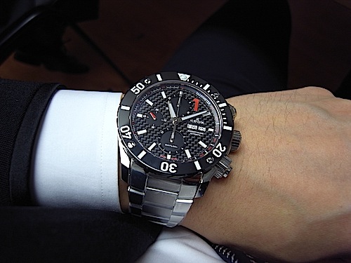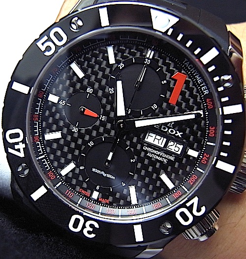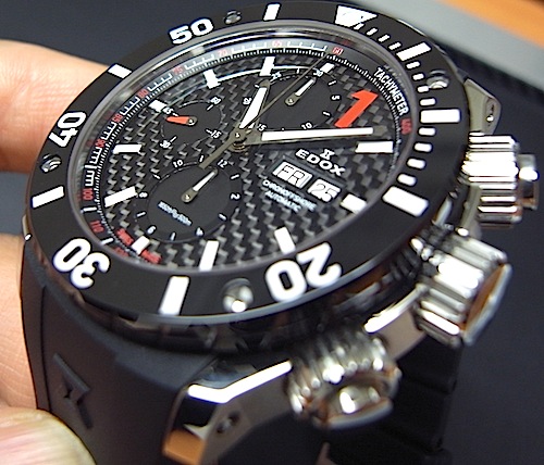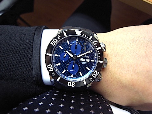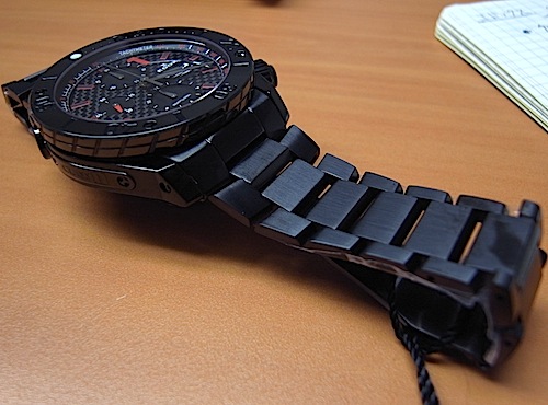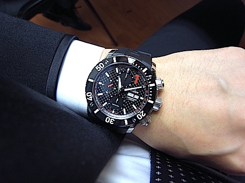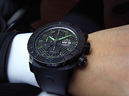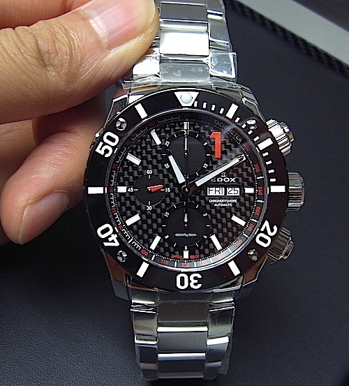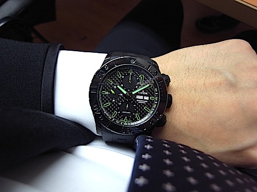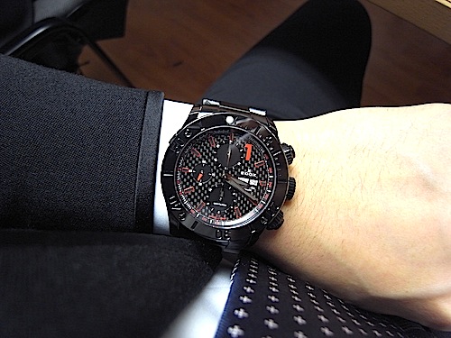 ケースサイズは45ミリ、SSケース、セラミックベゼル、カーボンダイヤル
