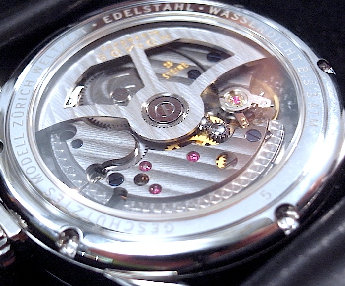 シースルーバックで自社製自動巻ムーブを見ることが出来ます。