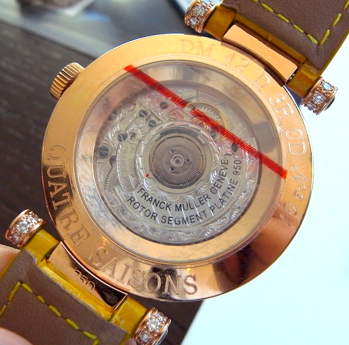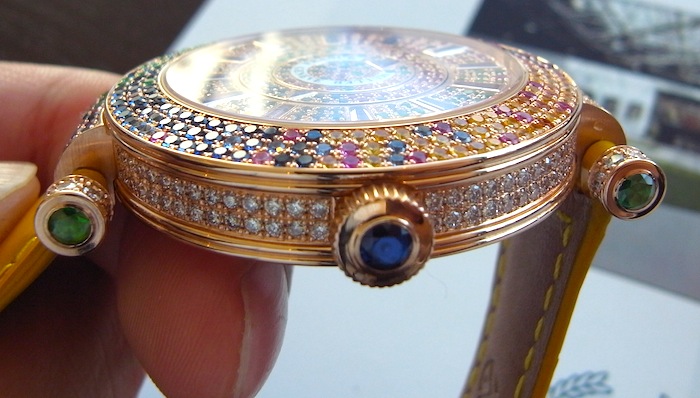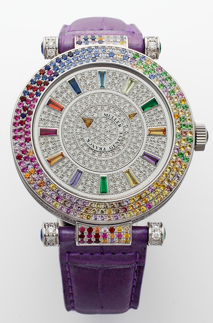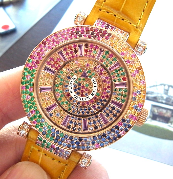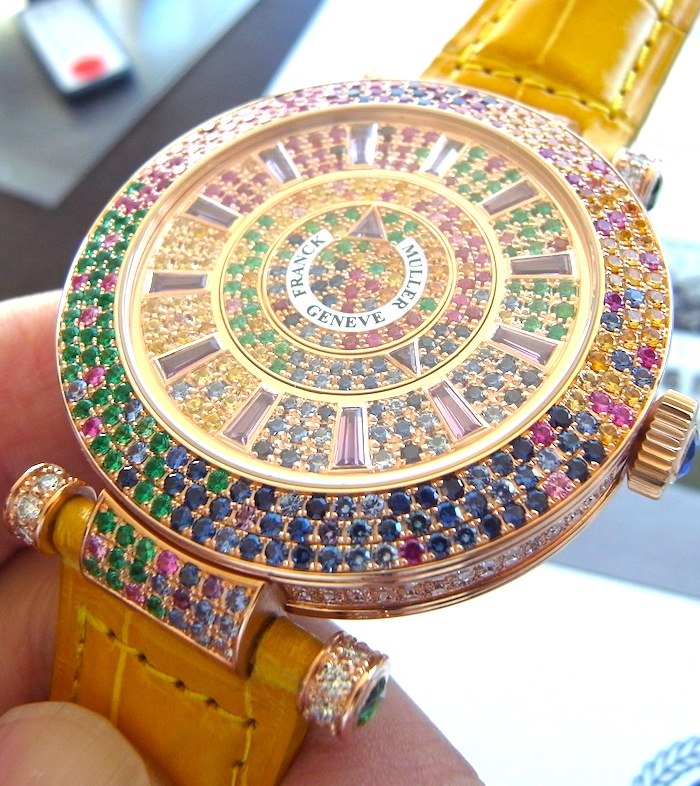 2011 フランクミュラー新作05 フォーシーズン Leave a reply こんな変わりダネをご紹介 フォーシーズンという名前のジュエリーウォッチ。 すみません、価格等が不明です。 カラーサファイア等の宝石の色で 季節の移ろいを表現しています。 時間の表示も針ではなく、2枚のディスクで表現します。 フランクらしい1本です!