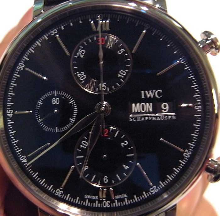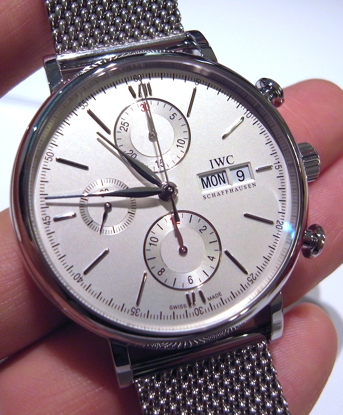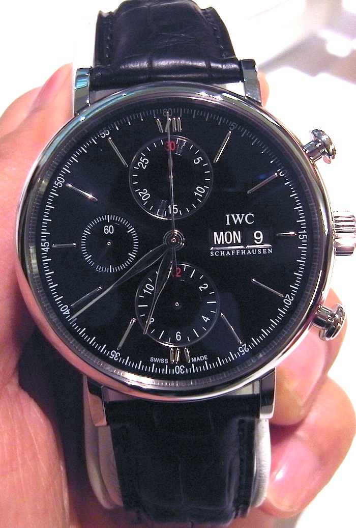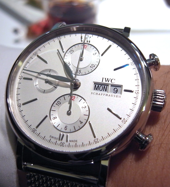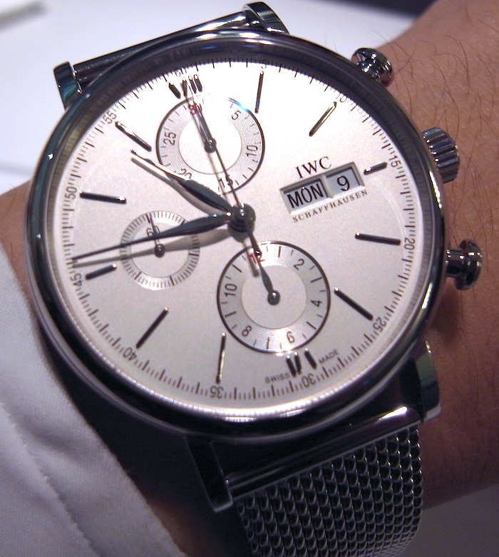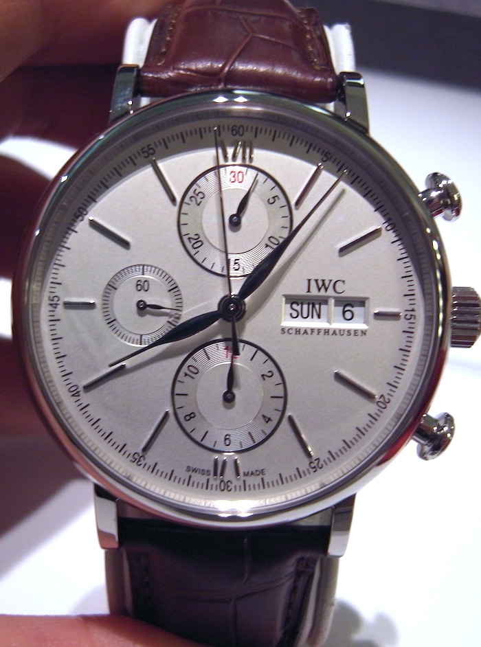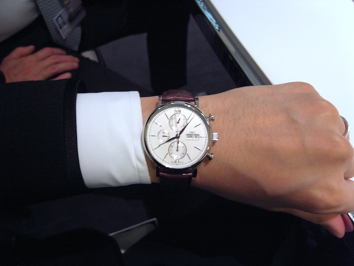 2011 IWC新作02 ポートフィノ クロノグラフ Leave a reply こちらも現行からフルモデルチェンジ! ポートフィノ クロノグラフです。 こちらも白と黒文字盤。 そして革ベルトとメッシュのブレスレットが用意されています。 サイズは現行モデルから1ミリアップの42ミリ。 価格は税抜予価で 革ベルト 480,000円 ブレスレット 565,000円 イメージは60年代のスポーツカーのコックピットだそうです。 なのでプッシュボタンも今までと違う スポーツカーのシフトのようなレトロな風合いになっています。 高級感もあり、非常に費用対効果の高い時計だと思います!