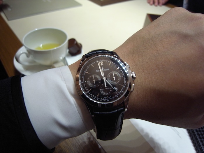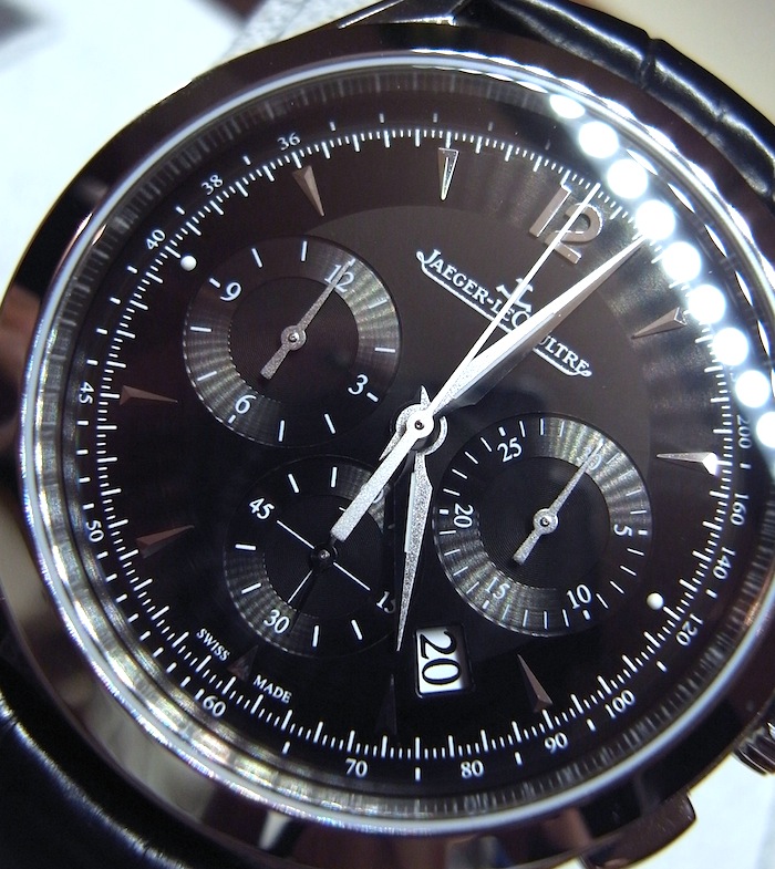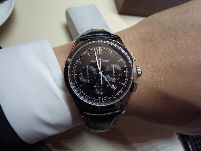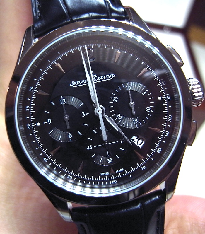 2011 ジャガールクルト新作12 マスタークロノグラフ Leave a reply 超正当派! Master Chronograph Cal.Jaeger-LeCoultre 751A/1 自動巻 65時間パワーリザーブ 5気圧防水 ケース径 40ミリ 税抜予価 SS 930,000円 昨年のシルバーダイヤルに続き やはり出てきました、本命の黒文字盤。 文句なくカッコイイです。 なにげに65時間もパワーリザーブがあるというところが マニュファクチュールである ジャガー渾身のクロノグラフらしさでしょうか。 40ミリという抑えめのサイズも素敵です。