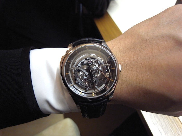 2011 ジャガールクルト新作09 マスターグランドトラディション ミニッツリピーター Leave a reply Master Grande Tradition A Repetition Minutes ムーブメント Cal.Jaeger-LeCoultre 947 手巻 15時間パワーリザーブ 5気圧防水 ケース径44ミリ 税抜予価 チタン 15,000,000円 世界限定100本 9月デリバリー予定 というわけで チタンのミニッツリピーター! 文字盤はスケルトンでかっこいいです。 一応音を録音しようと思って 動画を撮りましたが 雑音でほとんど聞こえません。。m(_ _)m よかったら見てみてください。