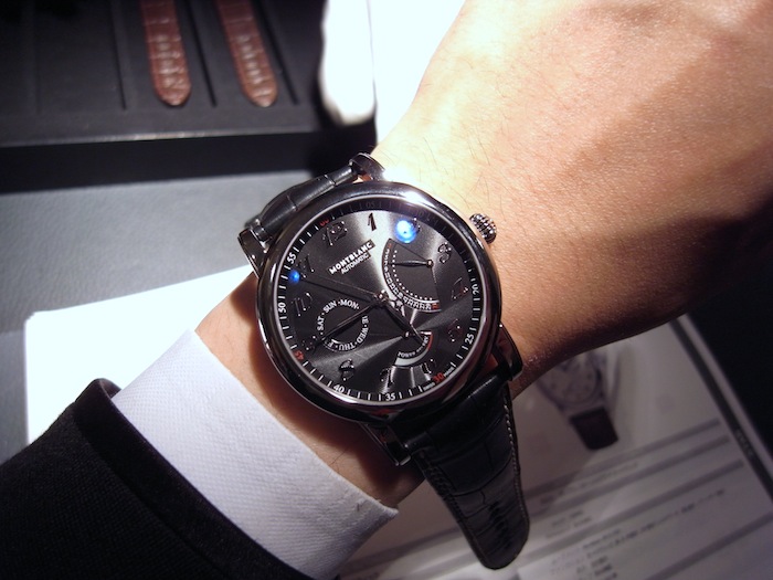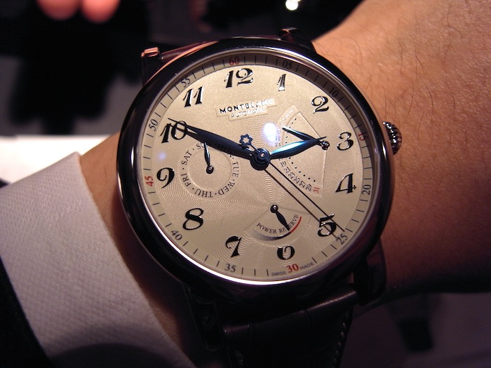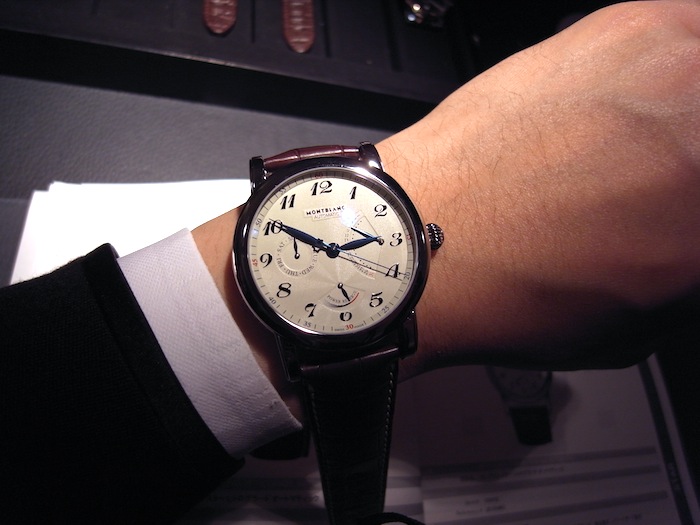 2011 モンブラン新作03 スターレトログラード Leave a reply 全くの新商品の登場です。 スター レトログラード オートマティックです。 ケースサイズは42ミリ、 3時位置に日付表示があり 31日まで針が下にカウントしていき 1日にビュン、とフライバックする、レトログラード機能が搭載されています。 また6時位置にはパワーリザーブ表示、42時間。 そして9時位置には曜日の表示がついています。 税込予価は441,000円。 ビジネスマンにぴったりの時計だと思います☆