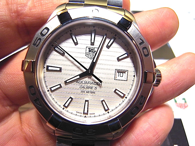 TAG Heuer(タグ・ホイヤー)Basel 2010 新作 part.14 Leave a reply タグホイヤー最後のご紹介です。 Aquaracer 自動巻 7月入荷予定 白・黒 2色の文字盤 キャリバー5 現行のタイプから2万円価格を下げた 予定税込価格は199,500円です ベゼルがなめらかになって ソフトな印象になりました。 文字盤の横ラインがカッコいいですね