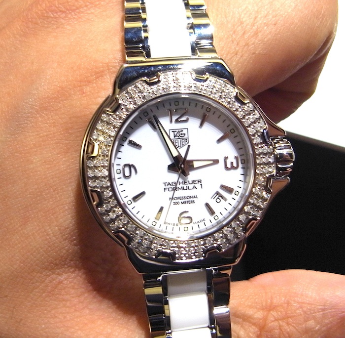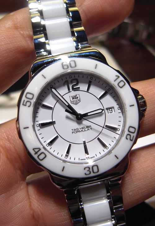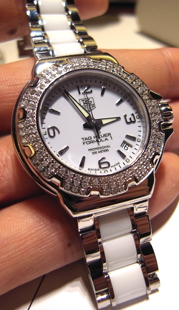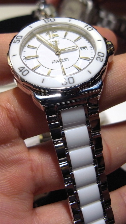 TAG Heuer(タグ・ホイヤー)Basel 2010 新作 part.7 Leave a reply THF1 レディス スティール&セラミック&ダイヤモンド 7月入荷予定 黒と白、2色の文字盤 37mm 60個のダイヤモンド(直径1,1mm) 予定税込価格 21万円 (ダイヤ無しのタイプは147,000円です) 女性向けのモデルです! ダイヤがビッシリ入ってます