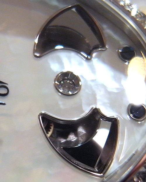 文字盤はMOP(マザーオブパール)で角度を変えるとこんなに美しく光ります☆