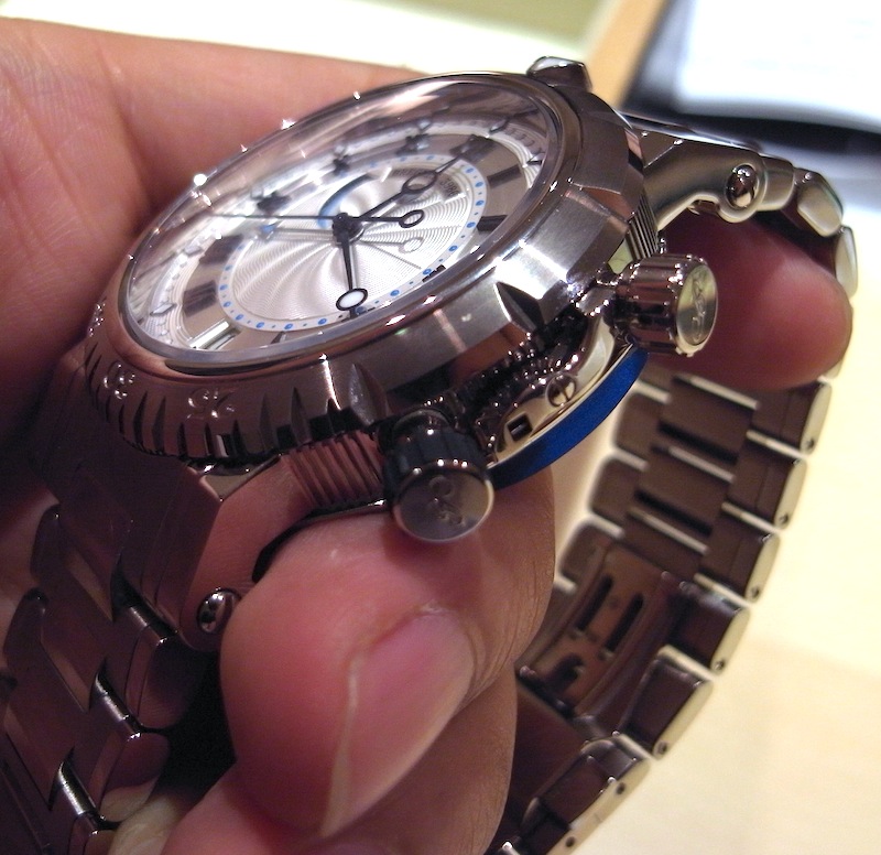 この時計に関しては時計もアラームも自動巻で巻き上げます。