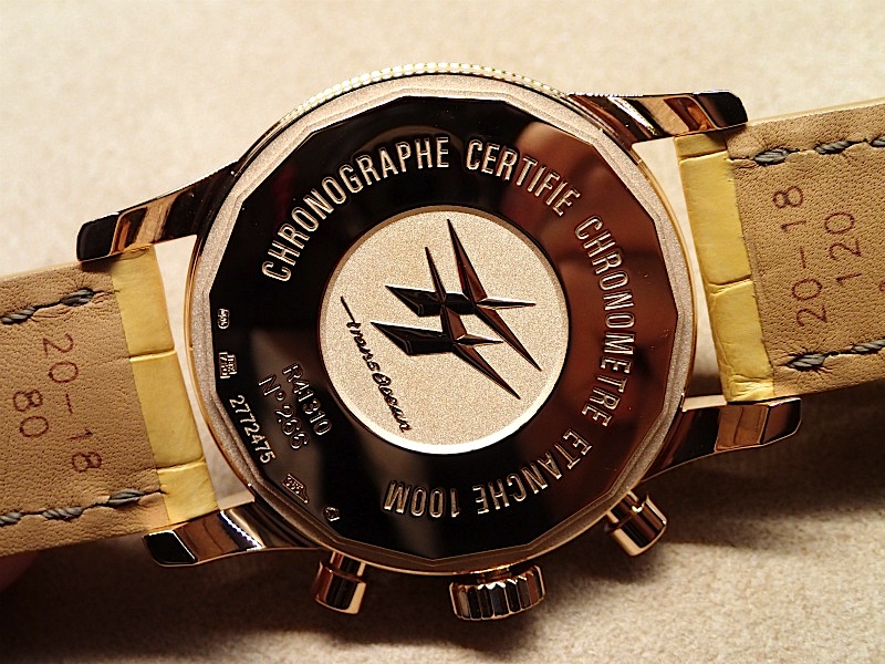 マーキュリーシルバーと呼ばれる文字盤とレッドゴールド製の