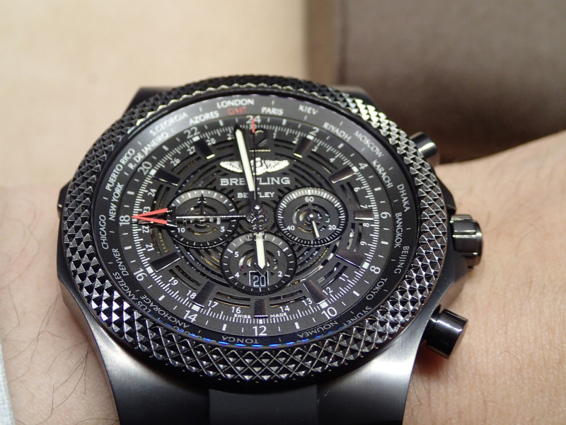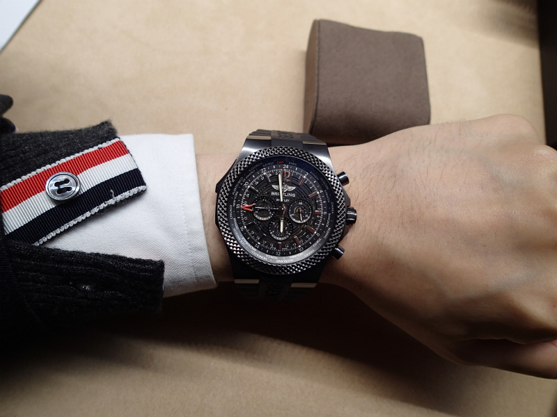 速報 ブライトリングforベントレーGMT ミッドナイトカーボン Leave a reply 正直、そんなに個人的には大好きというわけではなかった ベントレーGMTですが、 新作のミッドナイトカーボンのかっこよさにやられてしまいました。 49ミリ、世界限定1000本、9月発売予定、 税込予価は1,313,550円です。 ※写真着用者の手首のサイズは17センチです