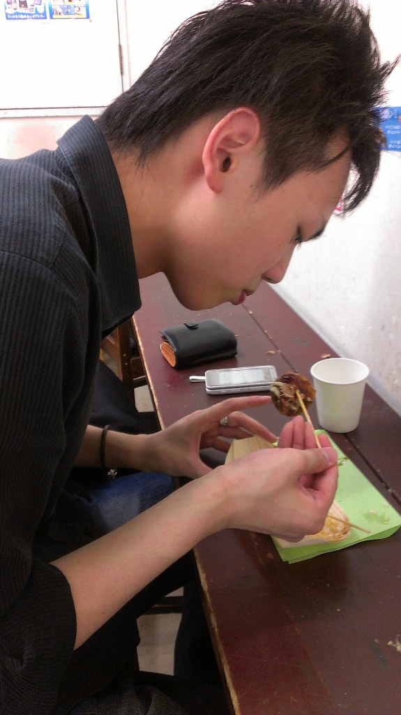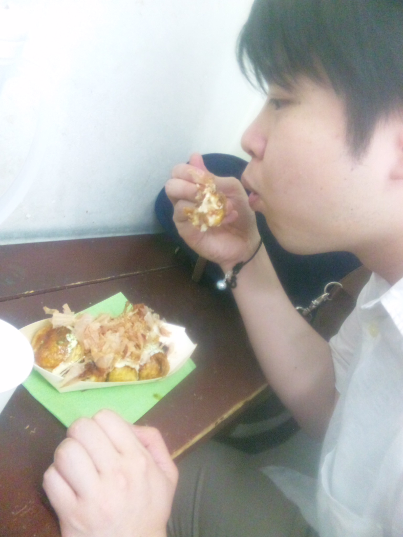 「熱い熱い」と言いながらたこ焼きを食べるK氏と私。