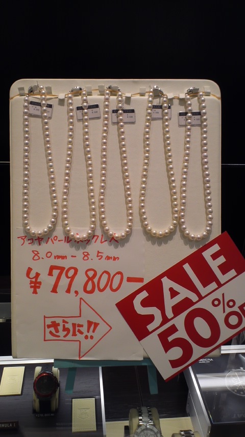 アコヤパールのネックレス(8~8,5mm)が何と50%OFFです。