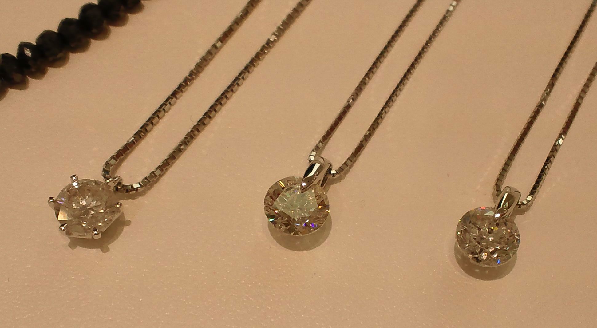 写真左の2点は0.5キャラット台のダイヤモンドです