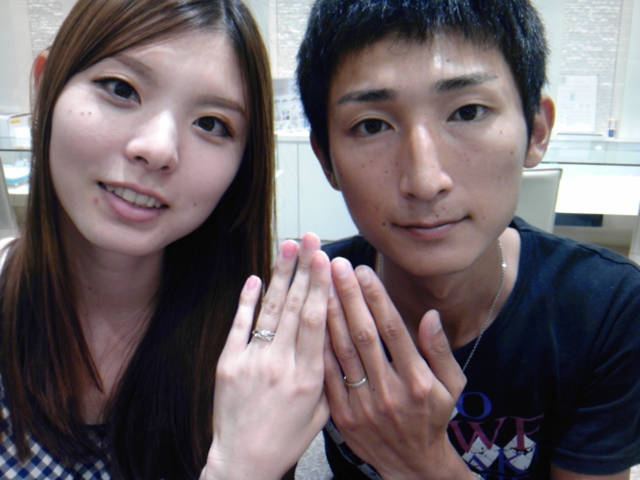 勝様☆可枝様 Leave a reply お盆が過ぎ、涼しくなってきましたね 朝晩冷え込んできますので、 風邪をひかない様にしましょう さて、お盆でお忙しい中、来店頂きました 勝様可枝様 有難うございました とっても素敵なお二人です お二人にお選び頂いた指輪は ラパージュトレフル ご婚約指輪ご結婚指輪 可枝様のご結婚指輪のダイヤは アイスブルーダイヤに替えさらに 可愛くなりました お二人に喜んで頂きとっても嬉しかったです お客様に納品する時はとってもしあわせな気持ちになります < font color="#7f3f00" size="3"> お式も控えられており、お忙しい毎日だと思われますが お体に気をつけてくださいね 勝様と可枝様の末永い幸せを 心よりお祈り申し上げます。 ベルブランシュTOMIYA イオンモール倉敷店 竹田