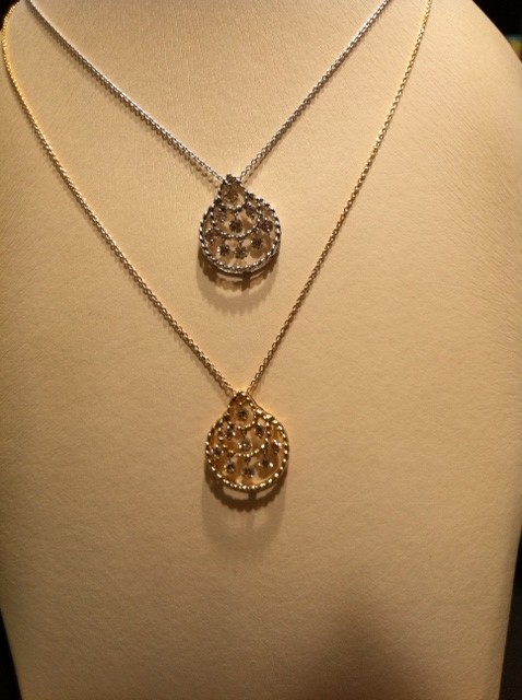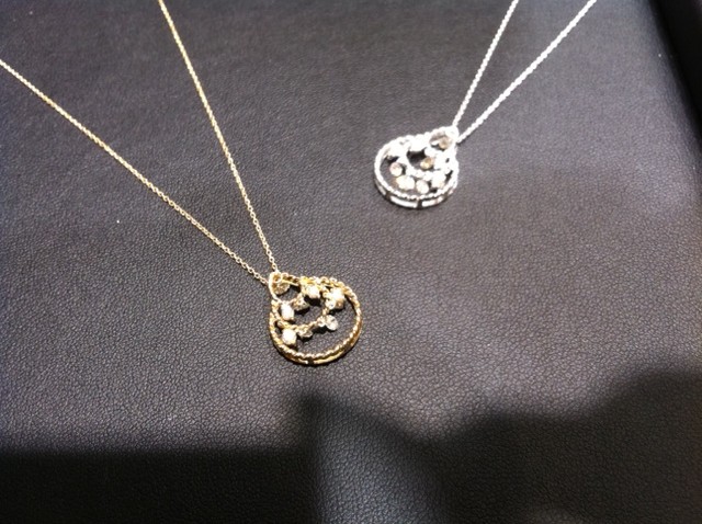 まじめな話をいたしますと、18金製のペンダントに輝いておりますのは、9石のダイヤモンドです