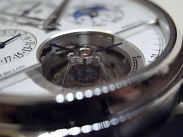 トゥールビヨンと西暦表示付きの永久カレンダー機構が搭載されています。