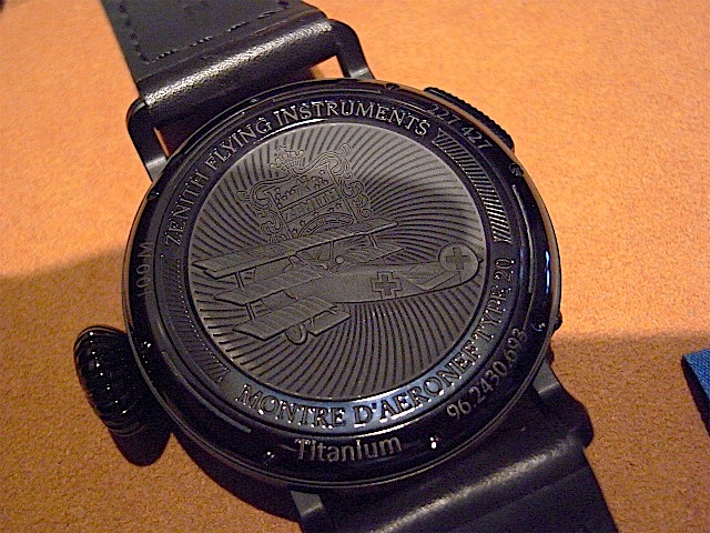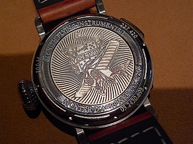 バックケース:ルイ・ブレリオ機とゼニスシンボルロゴの刻印
