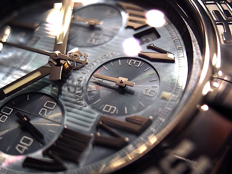 母貝を薄くスライスして文字盤に使用しているモデルのことです。