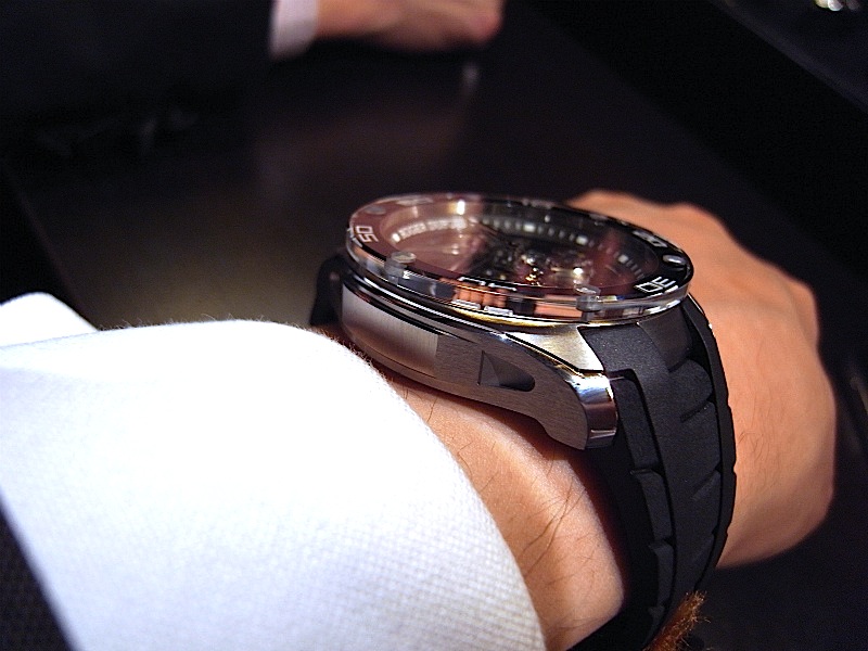スケルトンのカッコイイムーブメントはロジェらしく、